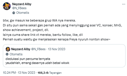 Kecuali berbicara mengenai fitnah yang mereka tebarkan, ini mungkin bisa menjadi concern untuk manajemen dan pihak terkait. Karena justru hal ini yang menjadi keresahan di saat mereka kehabisan konten untuk membuka skandal baru. Mengejar probabilitas keberhasilan kecil dengan menebar tembakan tanpa arah demi validasi yang mungkin tidak dia dapatkan di dunia nyata.