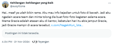 Tidak lama berselang, muncul sebuah klarifikasi dari fans yang muncul di foto tersebut. Pada pernyataannya, foto tersebut dicuri dari smartphone miliknya dan menjadi upaya untuk menjatuhkan member tersebut. Sayangnya hal tersebut terbantahkan oleh sebuah statement dari seseorang yang merupakan bagian dari tim yang diminta mendokumentasikan acara yang diselenggarakan oleh orang tua member tersebut dan kebetulan member tersebut ikut. Fans tersebut diminta untuk menjadi bagian tim dokumentasi tersebut dan orang tua member tersebut tidak tahu-menahu soal kejadian tersebut.