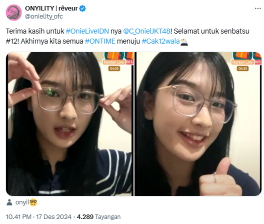 Contohnya adalah tagline Oniel dan fanbase-nya Onielity. Pada SSK 2024 ini, Oniel menggunakan tagline “#ONTIME” dan Onielity menggunakan tagline “Cakrawala”. Jalan tengah untuk menyambungkan bisa dengan membuat sebuah ungkapan seperti “Akhirnya kita semua #ONTIME menuju #Cakrawala🦅”